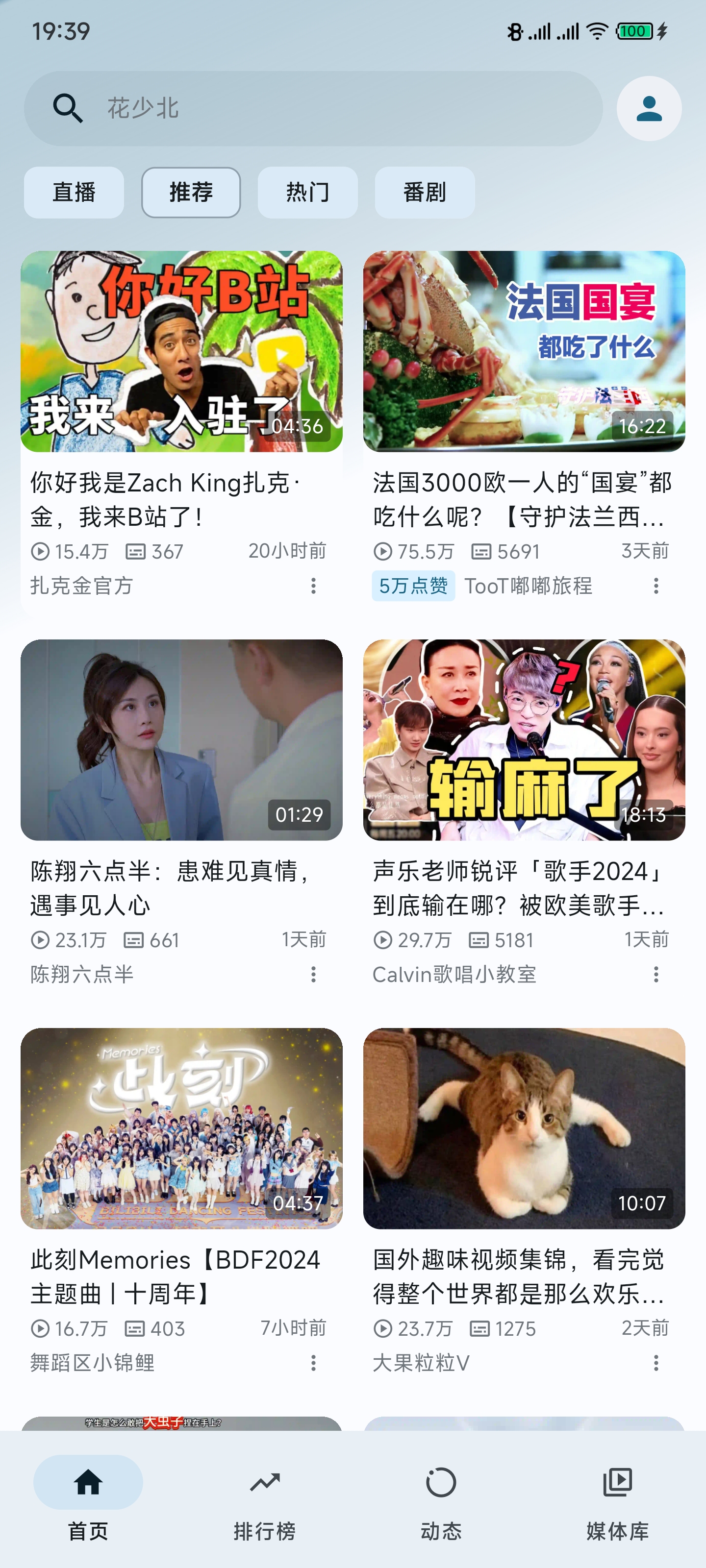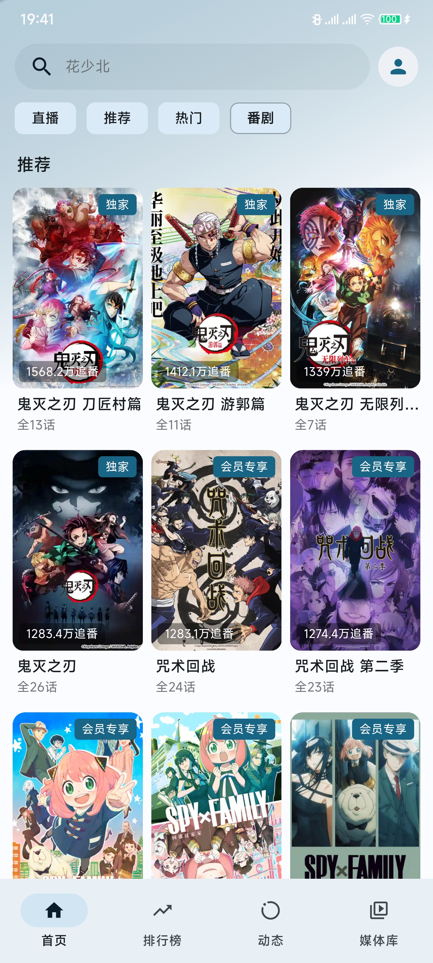 - 搜索功能:支持热搜词汇,历史搜索记录,以及对投稿、番剧、直播间和用户的搜索。